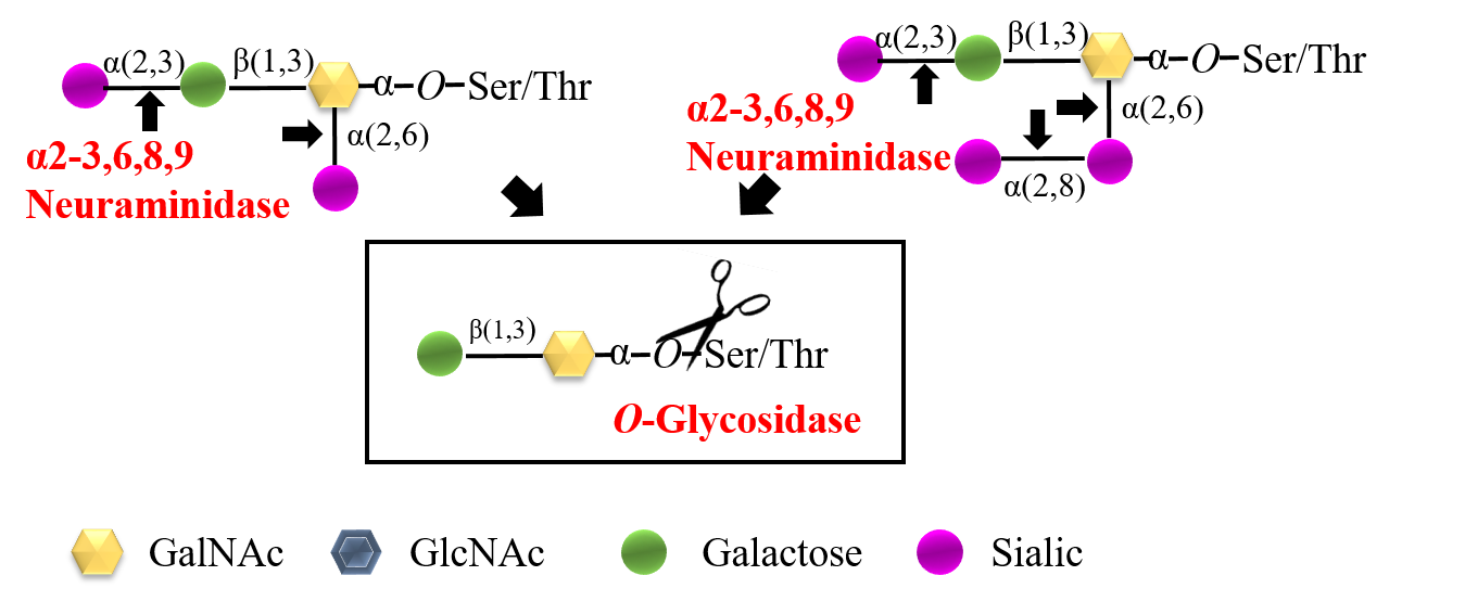 圖1. O-Glycosidase與α2-3,6,8,9 Neuraminidase組合用于糖蛋白O-連糖鏈的酶切釋放