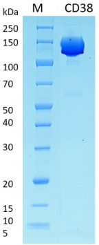 Human CD38,F(xiàn)c Tag 由中國(guó)倉(cāng)鼠卵巢(CHO)細(xì)胞表達(dá);蛋白編號(hào)為 P28907-1(Val43-Ile300),帶 hFc 標(biāo)簽;
