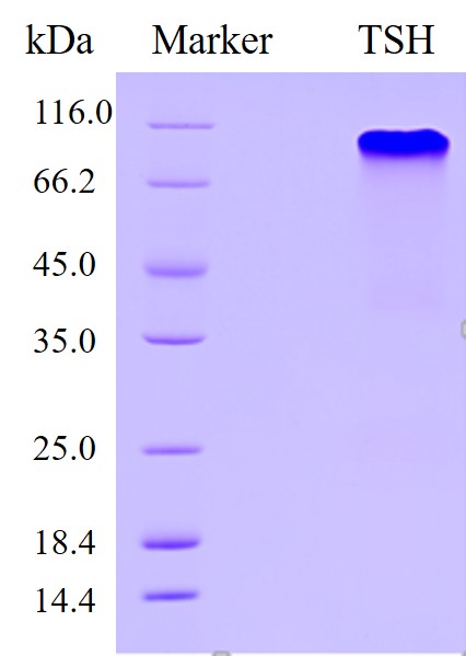 重組hTSH抗原是由中國(guó)倉(cāng)鼠卵巢(CHO)細(xì)胞表達(dá)的人TSH蛋白,由alpha亞基(NP_000726.1)beta亞基(NP_000540.2)以非共價(jià)鍵形式連接成異二聚體。