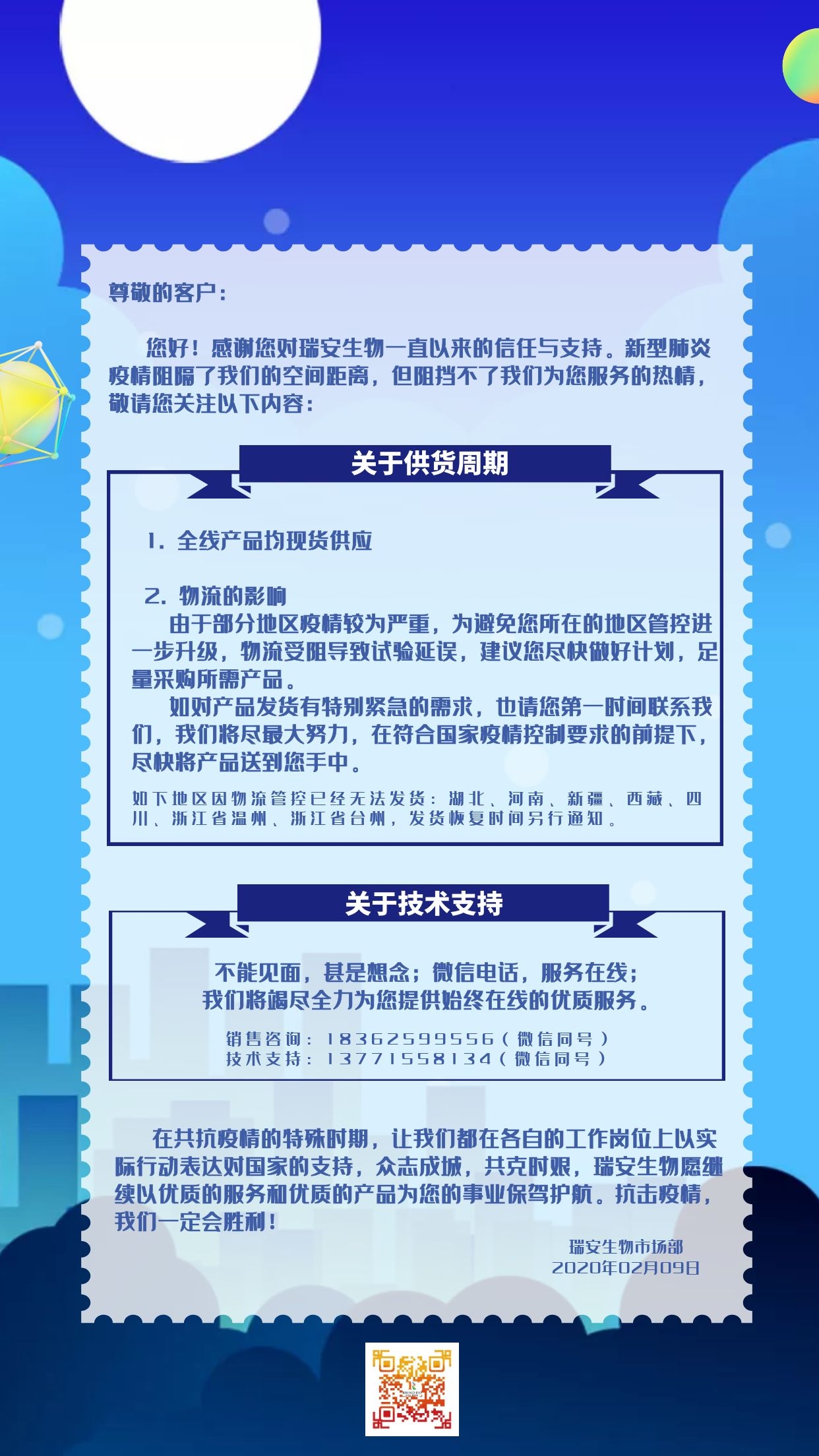 針對新型肺炎疫情的告客戶書